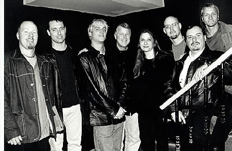 NEW YORK, May 29, 1998 -- Fuel takes a moment with their publisher, PolyGram Music Publishing before a sold out KROQ Irving Plaza show in New York City. The Sony/550 artists' major label debut album, Sunburn, is currently on the Billboard Top 100 album chart and spent several weeks at Number One on the Heatseekers chart. Their first single, "Shimmer", is currently receiving heavy radio airplay. The four-member Central Pennsylvania band is comprised of Brett Scallions (lead vocals, guitar), Carl Bell (guitar, vocals), Jeff Abercrombie (bass), and Kevin Miller (drums). The PolyGram Music Publishing signed band currently has a song on the Godzilla soundtrack and is busy touring the U.S. and Canada. Shown left - right are Abercrombie; Randy Sabiston, Senior Creative Director A&R, PolyGram Music Publishing; Scallions; David Sestak, Manager, Fuel; Holly Greene, Senior Vice President and General Manager, East Coast Operations, PolyGram Music Publishing; Bell; Greg Epler, Manager, Fuel; and Miller.