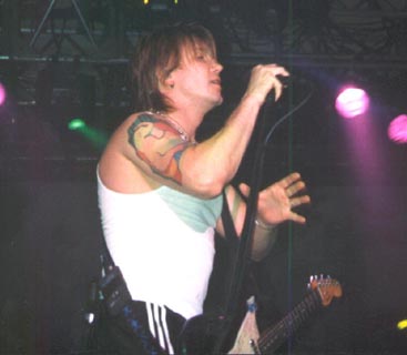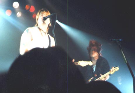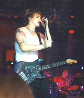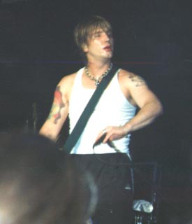 Finally, the moment of truth, the Goos break out onto the stage doing Dizzy, and the place went wild. The show was incredible. Johnny and Robbie (although hobbling), were all over the stage. My friend Stephanie was just amazed at what was going on. Right before Johnny sang "Name" he was talking to the crowd, and you could hear that his voice was very raspby, but when he sang you couldn't tell, he sounded great, and looked even better. The whole group looked like they enjoyed the show as much as we did.