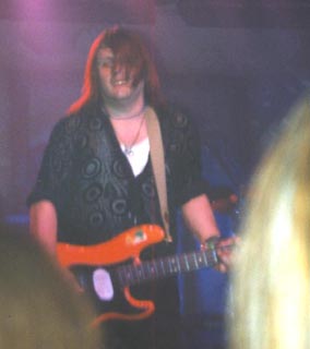 After the last song, Sarah told us to hang out with her, which of course we did, and sure enough, "Damage" came out onto the floor to see her. She introduced us to him and he introduced himself as "Michael". He gave us each one of Johnny's guitar picks with the word "GOO" on them, which I will treasure forever, since it's the only pick I've ever gotten. I had to tell Stephanie, don't get used to this, this is not what usually happens during a concert. Now I've spoiled her.