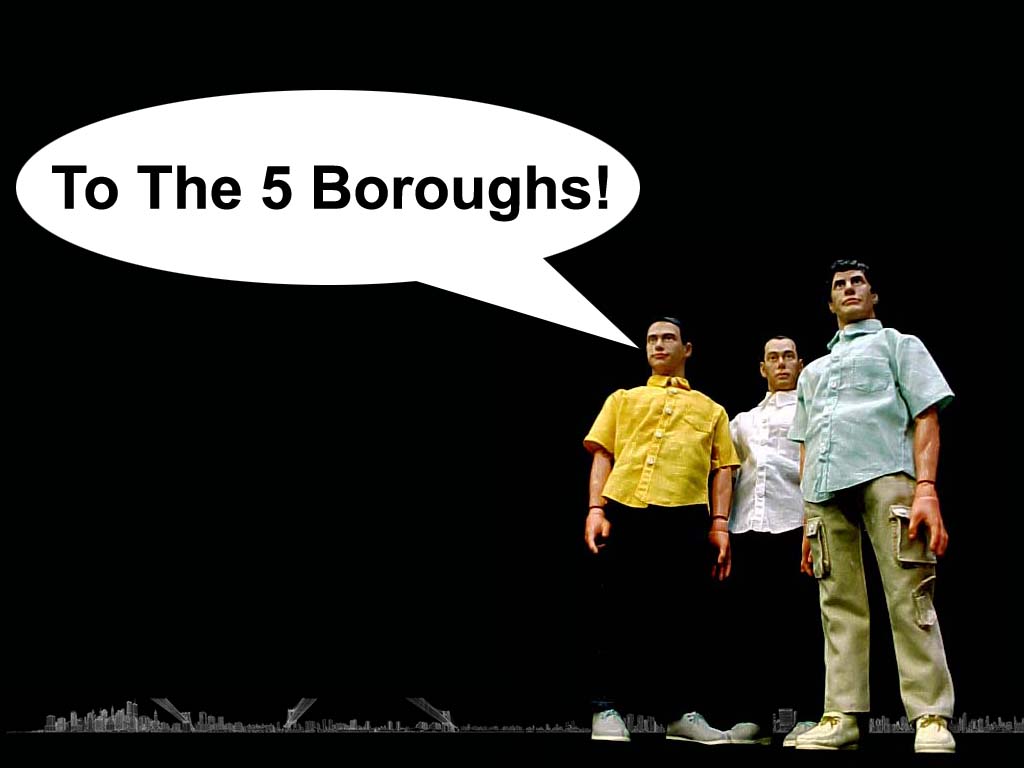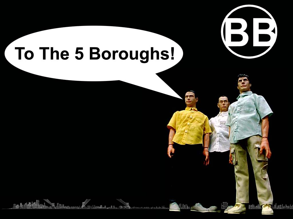 These were pretty much all made from press pictures from EMI Australia, except 5D06 which was made from a scan by from someone on the MB (PM me if it was you) and 5D07 and 5D09 were made using the skyline provided by b-grrrlie (original here) and images of the Beastie Boys from Art Of Toys.